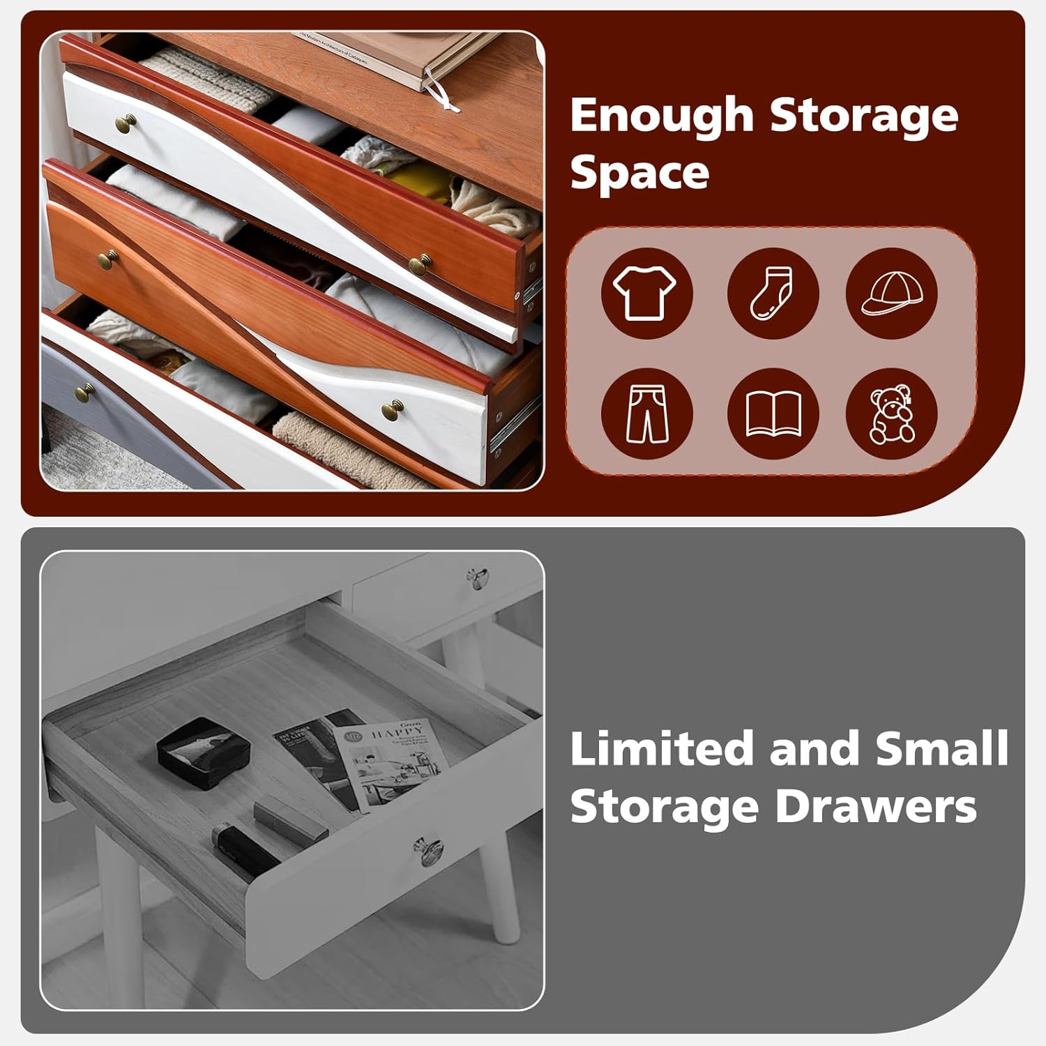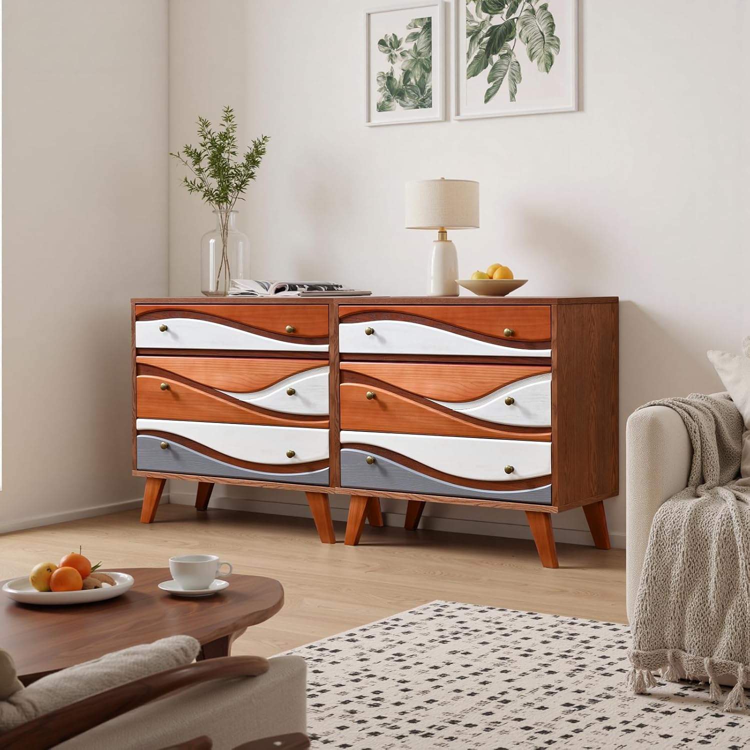 - 【Artistic Wave Design】The drawer fronts feature a sculpted wave design in a natural blend of white, amber-brown, and gray tones. Smooth, rhythmic lines create an elegant sense of artistry and depth, adding warmth and personality to your home décor.