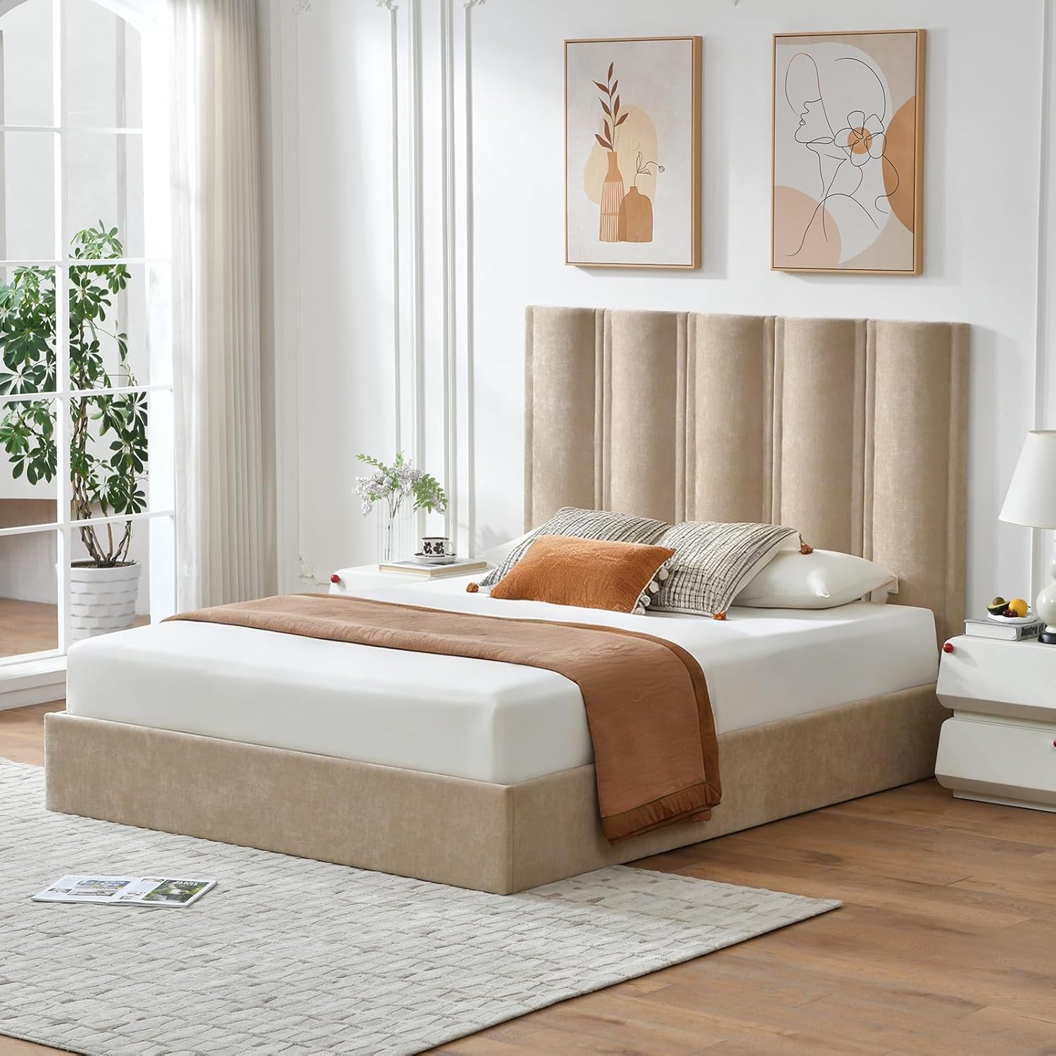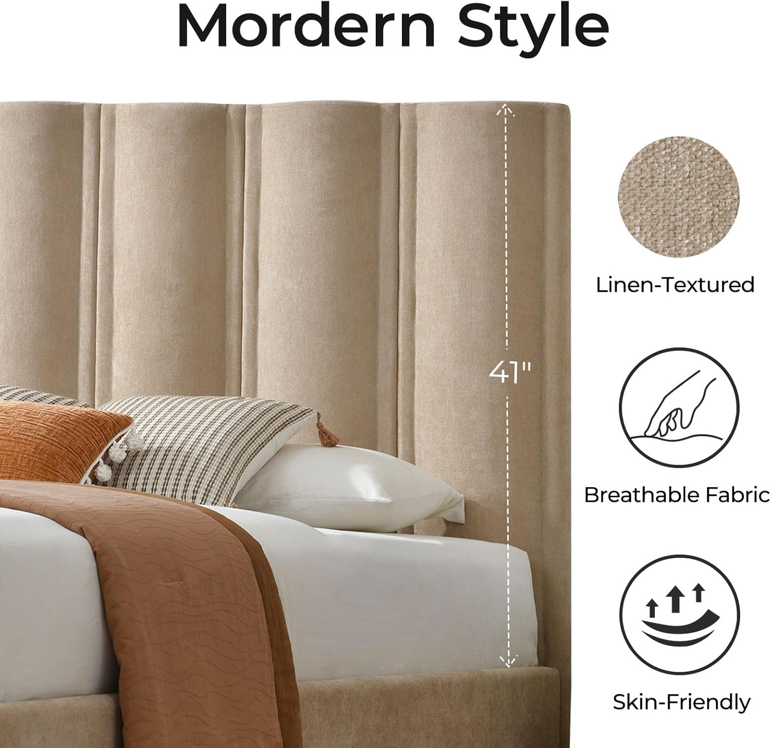- 51.6" Tall Vertical Channel Headboard: Featuring an impressive 51.6-inch tall headboard with a refined vertical channel design, this upholstered bed frame adds modern elegance, visual height, and a statement look to any bedroom.